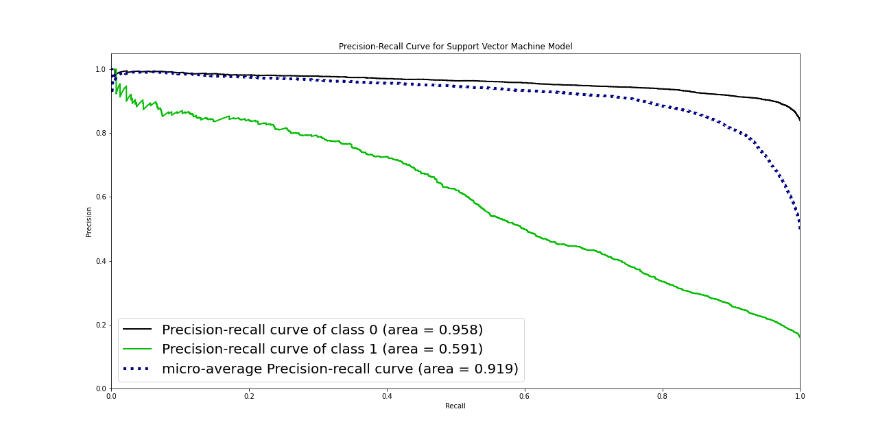 plt.title("Precision-Recall Curve for Support Vector Machine Model")